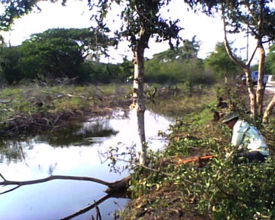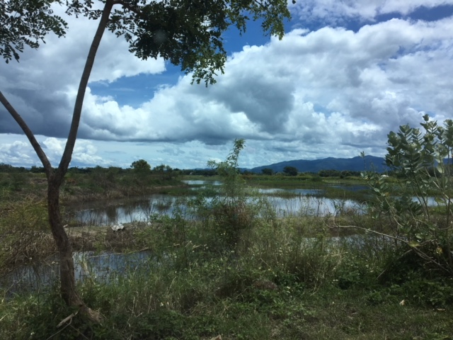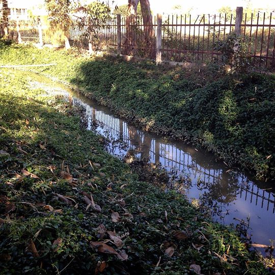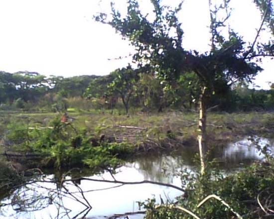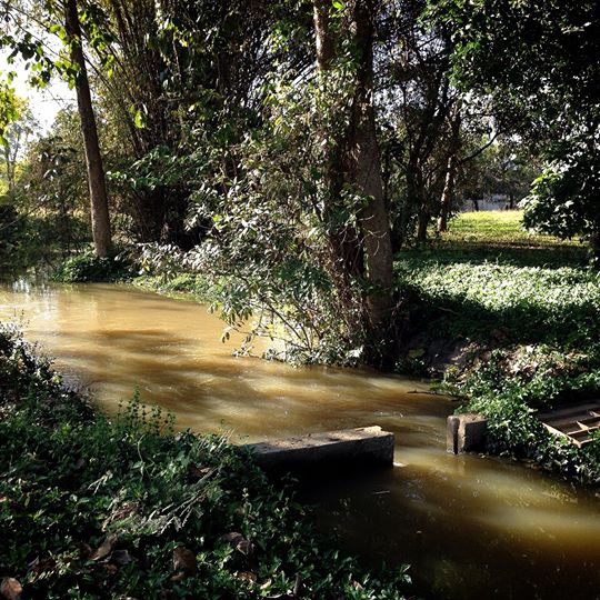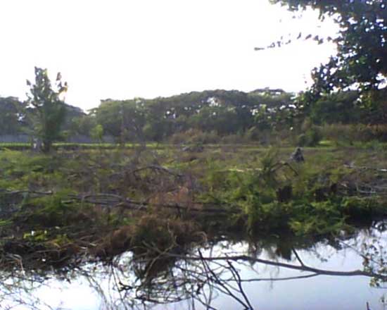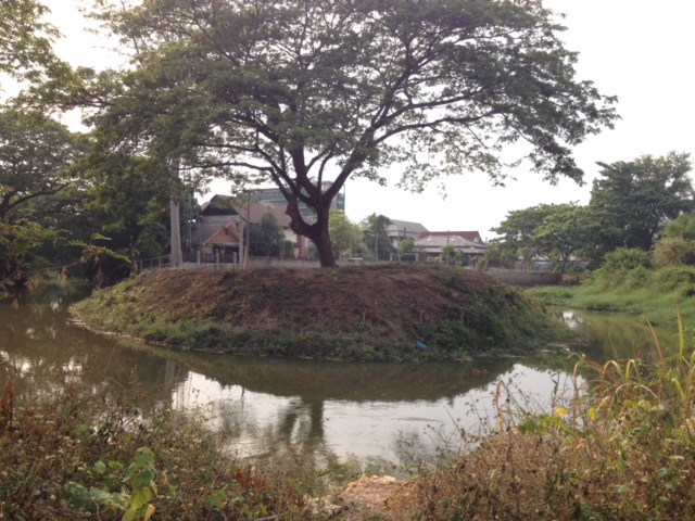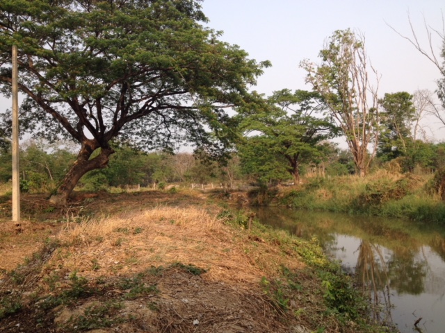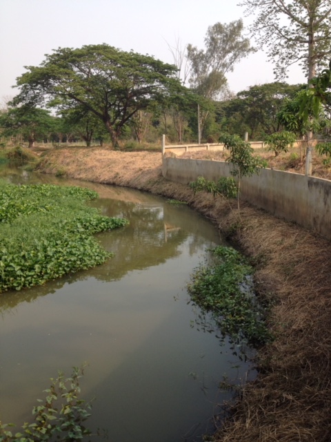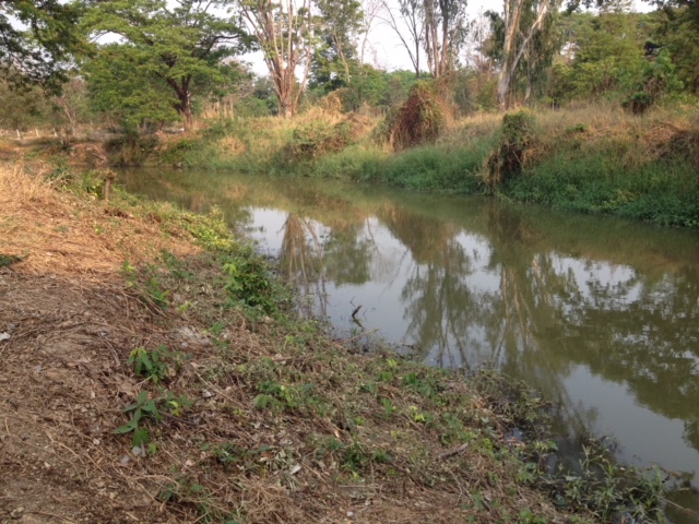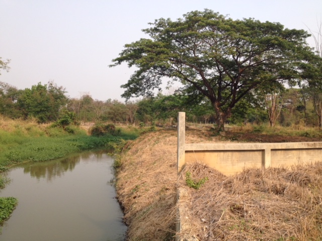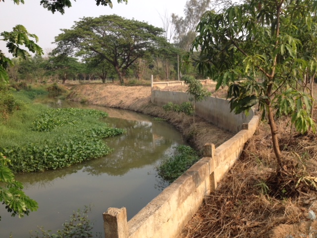 - Land is filled with side water. And behind the land, side with overflowing weir. Water and hearing water flow throughout the year.